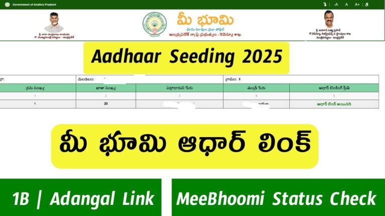 📰 MeeBhoomi Aadhaar Seeding 2025 – Complete Guide (Online + Offline) ఏపీలో మీ భూమి రికార్డులు Aadhaar కు link అయి ఉండడం …